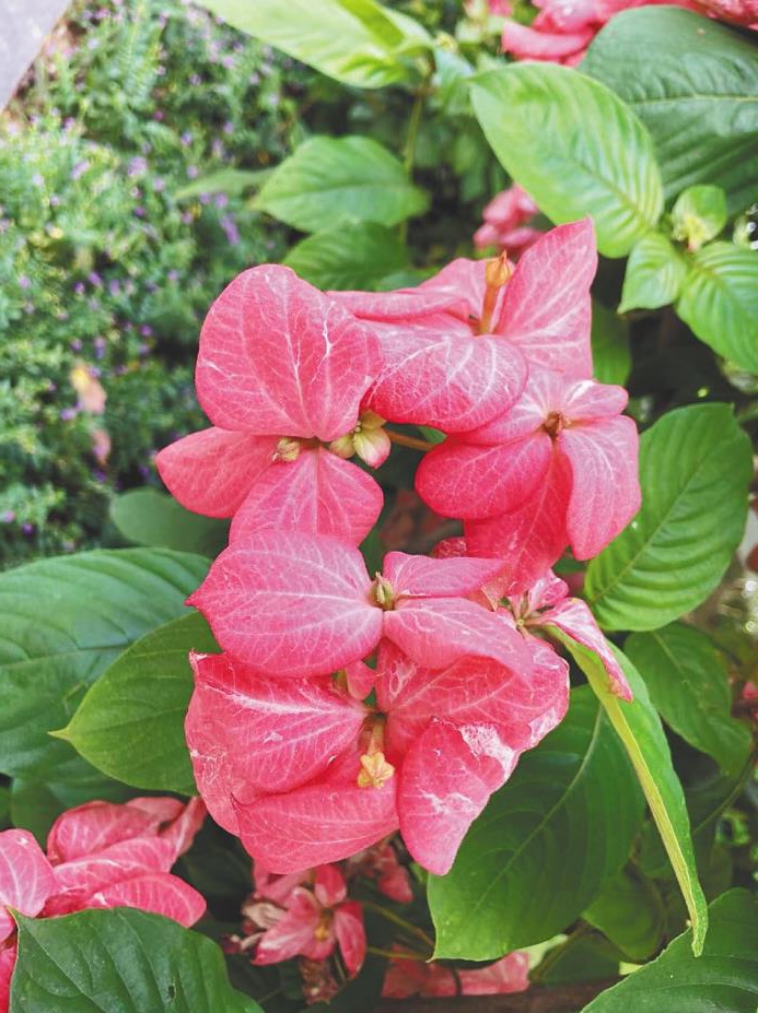 作为茜草科玉叶金花属的常绿或半落叶灌木,粉叶金花的萼片在开花后仍存在,又因形状与叶子近似,因此也得名“粉叶”。