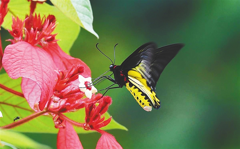 天地初开,第一个踏上荒芜陆地的是植物。历经漫长岁月的洗礼,它们为生存,在进化与伪装中几经演变。作为植物界的“伪装大师”,粉叶金花循本能与昆虫协同进化,造就如今的摇曳身姿,如一抹粉霞,为琼岛平添几分浪漫。