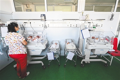 10月24日,在罗马尼亚布加勒斯特,一名护士在妇产科照顾新生儿。