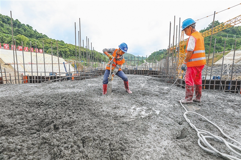刚过去的雨季叠加台风带来的充沛降水使得南渡江上游水位涨势汹涌,一度导致工程大坝基坑淹水。张润林介绍,他们不断优化施工方案,从施工技术、安全管理、生态平衡保护等方面稳步推进施工。