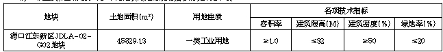 海口市江东新区JDLA-02-G02地块用地的规划指标情况详见下表: