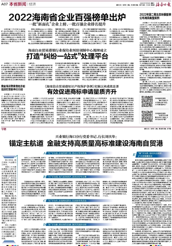 锚定主航道 金融支持高质量高标准建设海南自贸港