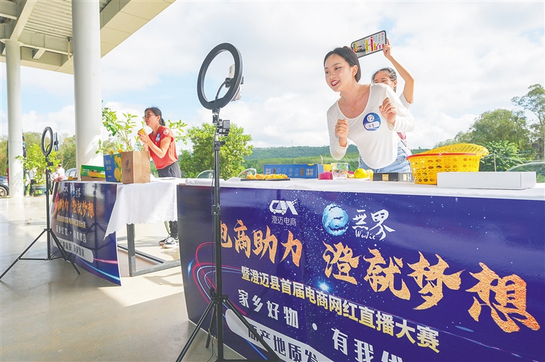 11月13日,澄迈县首届电商网红直播大赛决赛在中兴镇举行,图为选手在进行线下路演环节比赛。此次大赛重在推进该县电商产业发展,助力乡村振兴。文/图 本报记者 余小艳 武威
