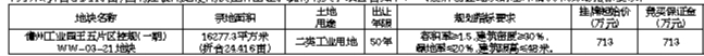 二、宗地开发建设要求: (一)该宗地用于建设园区配套清洁、低碳综合智慧能源服务项目,在签订《国有建设用地使用权出让合同》后一个月内开工,一年半内竣工,项目投产时间为项目竣工后的半年内。(二)该宗地第一年投资额不少于732.48万元,在约定投产时间内的固定资产投资强度不低于500万元/亩,项目投产之日起,五年累计的纳税总额不低于3662.4万元人民币(平均每年土地税收贡献率不低于30万元/亩),亩均年产值不低于300万元,以上控制指标纳入《儋州工业园产业项目发展和用地准入协议》。(三)本宗地建设严格按照省装配式相关政策要求执行,竞得人竞得土地后,如造成地块闲置的,按照《海南自由贸易港闲置土地处置若干规定》处置。(四)申请人拟成立项目公司或全资子公司进行开发建设的应在竞买申请书中明确项目公司或全资子公司的出资构成、成立时间等内容,申请人在项目公司出资比例不得低于50%(不含50%),由项目公司或全资子公司与市自然资源和规划局签订《国有建设用地使用权出让合同》,办理不动产权登记手续。三、净地情况:该宗地已经(琼国土资函〔2017〕607号)批准农转用及征收,四至界线清楚、面积准确、土地权利清晰、安置补偿落实到位、无法律经济纠纷、土地开发利用规划条件明确、符合土壤环境质量要求;该宗地周边可以满足施工建设所需的水、电供应,相关设备、机械可以进场施工,具备动工开发所必需条件。经我局核查,该宗地不存在违法占地和违法建设情况。四、地价评估情况:该宗土地片区基准地价为320元/平方米(折合21.3万元/亩),评估价格为438元/平方米(折合29.2万元/亩),总价为712.95万元,该评估价格经委托海南省土地估价师与土地登记代理人协会组织专家评审通过和报省自然资源和规划厅备案。五、竞买申请:(一)竞买人资格。凡在中华人民共和国境内外的自然人、法人和其他组织(除法律、法规另有规定外)均可申请报名参加竞买(注:失信被执行人不得参加本次竞买)。本次挂牌出让不接受联合申请,申请参加竞买者须提出书面竞买申请,并按挂牌出让手册中要求提供相关文件,具有下列行为的自然人、法人和其他组织,不得申请竞买:1.在儋州市范围有拖欠土地出让金行为,至今尚未付清的。2.在儋州市范围内有闲置土地、低效利用土地、未按土地出让合同约定动工开发的、擅自改变土地用途等违法行为、未及时纠正的。3.被人民法院列入失信被执行名单和被税务系统列入重大税收违法案件联合惩戒名单的企业法人和个人。4.根据海南省自然资源和规划厅《关于加强土地供应竞买人资格审核的通知》(琼自然资函〔2020〕1753号)文件规定,原非法占地、违法建设行为人。(二)交易资料获取方式。本次挂牌出让的详细信息和具体要求,见挂牌出让手册及其他相关文件。手册和文件可从海南省建设用地使用权和矿业权网上交易系统(以下简称网上交易系统,网址:http://lr.hainan.gov.cn:9002)查看和打印。(三)竞买申请方式。本次交易活动竞买申请环节采取线下方式进行,有意向的竞买人按挂牌出让手册的具体要求报名参加竞买。不接受电话、邮寄、口头等其他形式的申请。竞买申请地点:儋州市自然资源和规划局。竞买申请时间:2022年11月14日09时00分至2022年12月14日17时00分(北京时间)。(四)竞买保证金。竞买人报名参加竞买时,须在公告规定的时间内将竞买保证金713万元存入儋州市自然资源和规划局指定的账户,竞买保证金在账户期间不计利息。本次竞买保证金的币种为人民币,不接受外币。竞买保证金应不属于银行贷款、股东借款、转贷和募集资金所得,并出具承诺。竞得人缴纳的竞买保证金转为土地出让金,未竞得者缴纳的竞买保证金在挂牌活动结束后5个工作日内予以退回,不计利息。竞得者违约反悔的,竞买保证金不予退还。根据海南省自然资源和规划厅《关于海南省土地交易市场竞买保证金可使用银行保函的通知》(琼自然资规〔2022〕7号)规定,该宗地可采用银行保函方式提供竞买保证金。使用银行保函方式提供土地竞买保证金的,保函应为不可撤销、见索即付保函,担保金额应不少于全额土地竞买保证金,保证期限自保函开立之日起至挂牌交易活动结束后不少于60日;纸质保函需在竞买保证金到账截止时间前2个工作日送达。竞买保证金到账截止时间为:2022年12月14日17时00分(北京时间)。(五)资格确认。经审核,竞买申请人符合竞买资格,且竞买保证金已按要求交纳的,儋州市自然资源和规划局将发放《竞买资格确认书》,确认其获得竞买资格。竞买资格审核时间: 2022年11月14日09时00分至2022年12月14日17时30分。六、挂牌报价时间及地点:(一)本次交易活动挂牌报价竞价环节采取线下方式进行,获得竞买资格的竞买人应按挂牌出让手册的具体要求参与报价竞价活动。挂牌报价阶段仅接受书面报价,不接受电话、邮寄、电子、口头等其他方式报价。挂牌截止由挂牌主持人主持确定。(二)挂牌报价时间: 2022年12月5日09时00分至2022年12月16日10时00分,受理报价时间为北京时间工作日09时00分至17时00分。(三)挂牌报价地点:儋州市自然资源和规划局。(四)挂牌现场会地点:海南省公共资源交易服务中心二楼土地矿产资源交易厅(203室)。七、其他需要公告的事项: (一)本次国有建设用地使用权挂牌出让设有底价,按照价高且不低于底价