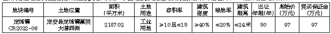 该地块土地权利清晰、安置补偿落实到位、地上附着物已完成清表、无法律经济纠纷、土地开发利用规划条件明确、符合土壤环境质量要求,地块周边可以满足施工建设所需的水、电供应,相关设备、机械可以进场施工,具备动工开发所必需的条件。二、宗地开发建设要求:(一)该地块项目应使用装配式方式建造。(二)开发建设期限:竞得人应自《国有建设用地使用权出让合同》签订之日起100天内动工,动工之日起540天内竣工,竣工之日视为投产,项目须在投产后360天内达产。竞得人未按出让合同约定时间动工及竣工的,每延期一日,应向出让人支付土地出让价款总额1‰的违约金。竞得人造成土地闲置,按照《海南自由贸易港闲置土地处置若干规定》执行。(三)竞得人取得土地使用权后应与周边地块整体开发,且须遵循片区控制性详细规划。(四)竞得人取得土地使用权后,应严格按照规划要求建设。 涉及水务、绿化、市容、卫生、环境保护、消防安全、交通管理等的设计施工,应符合国家和海南省的有关管理规定。(五)成交价款不包括有关税费,竞得人须按照规定到县税务部门缴纳契税、印花税等税费。(六)本宗地按现状出让,土地竞得人对宗地现状已充分知晓并接受土地现状条件受让。 三、竞买事项:(一)竞买人资格范围:中华人民共和国境内外的自然人、法人或其他组织均可申请参加竞买(注:失信被执行人不得参加本次竞买)。本次挂牌出让不接受联合申请,属境外的企业或其他组织的,须提供境外公证部门的公证书及法律规定的其他文件。具有下列行为竞买人不得参加本次土地出让挂牌:1.在定安县范围有拖欠土地出让金行为,并未及时改正的。2.在定安县范围有因自身原因造成闲置土地,并未及时纠正的。3.根据《海南省自然资源和规划厅关于加强土地供应竞买人资格审核的通知》(琼自然资函〔2020〕1753号)文件规定,原非法占地、违法建设行为人。(二)申请人竞得土地后,拟成立新公司进行开发建设的,竞得人在新公司中出资比例不得低于50%(不包含50%)。(三)本次国有建设用地使用权挂牌出让设有底价,按照价高且不低于底价者得的原则确定竞得人。(四)竞买咨询及报名期限:本次挂牌出让的详细资料和具体要求,见挂牌出让文件,有意参加竞买者可到定安县自然资源和规划局218办公室或海南省公共资源交易服务中心一楼受理大厅3号窗口查询和获取挂牌出让手册,并按挂牌出让手册的具体要求报名参加竞买。报名期限:2022年11月14日09:00至2022年12月14日16:00(以竞买保证金实际到账为准)。(五)竞买保证金:申请人应在2022年12月14日16:00前将竞买保证金存入指定账户(以到账为准)。(六)资格确认:经审查,申请人按规定交纳竞买保证金,具备申请条件的,我局将在2022年12月14日17:00前确认其竞买资格。(七)挂牌报价时间及地点:挂牌起始时间:2022年12月5日09:00。挂牌截止时间:2022年12月16日09:30。挂牌地点:海南省政府会展楼二楼省公共资源交易服务中心土地交易厅。(八)本次竞买活动只接受书面报价,不接受电话、邮寄、电子邮件、口头等其他方式报价。四、其他事项:(一)竞得人须在签订《成交确认书》之日起10个工作日内与定安县自然资源和规划局签订《国有建设用地使用权出让合同》。(二)竞买人须在竞买初审前与定安县科学技术和工业信息化局对接,完全知晓该宗地《海南省产业项目发展和用地准入协议》内容,并向定安县塔岭工业园区管理委员会出具书面承诺,如竞得该宗国有建设用地使用权,将严格按照该宗地《海南省产业项目发展和用地准入协议》规定的要求进行项目开发建设和经营管理。同时,竞买人须在签订出让合同时一并与定安县科学技术和工业信息化局签订《海南省产业项目发展和用地准入协议》,并严格按照《海南省产业项目发展和用地准入协议》约定内容进行开发建设,否则将承担相关违约责任。(三)用地出让控制指标:该宗地为制药企业扩产用地,投资强度不低于250万元/亩,年度产值不低于500万元/亩,年度税收不低于15万元/亩。以上出让指标列入《海南省产业项目发展和用地准入协议》,属该协议内容的组成部分。(四)挂牌时间截止时,有竞买人表示愿意继续竞价,转入现场竞价,通过现场竞价确定竞得人。(五)本次出让成交价款不包括各种税、费,办理土地登记产生的所有税、费由竞得人承担。(六)竞得人取得土地使用权后,应严格按照规划要求建设。涉及水务、绿化、市容、卫生、环境保护、消防安全、交通管理等的设计施工,应符合国家和海南省的有关管理规定。(七)挂牌出让的地块按现状条件出让。本次挂牌事项如有变更,以变更公告为准。(八)本公告未尽事宜详见《定安县国有建设用地使用权挂牌出让手册》,挂牌出让手册所载内容为本公告组成部分。五、咨询方式:咨询电话:马先生:15607688858 ;杨先生:0898-65303602;王女士:0898-63822430。查询网址:http://lr.hainan.gov.cn:9002/;http://zw.hainan.gov.cn/ggzy/;http://lr.hainan.gov.cn。