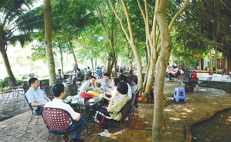 “先生,咖啡要续杯吗?”11月8日,在澄迈福山咖啡文化风情镇的森谷咖啡馆,刚喝完一杯“歌碧欧”的游客王强听到了服务员的询问声。他轻轻点了点头,又慢慢转过头去望向窗外的椰子树、棕榈树,静享悠闲的午后时光。