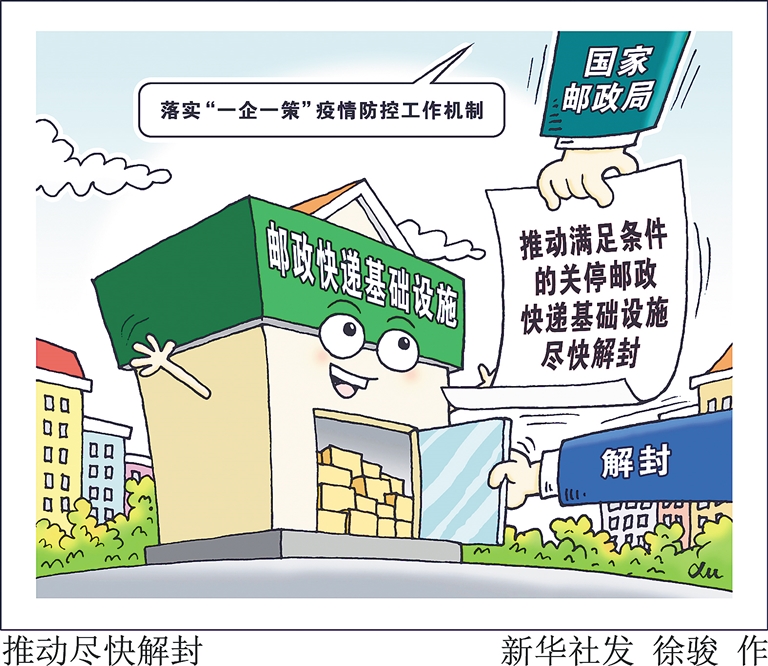 新华社北京11月14日电 (记者戴小河)国家邮政局近日印发通知,要求各级邮政管理部门要推动地方政府,对于已经关停的邮政快递基础设施,满足解封条件的要尽快有序解封,对于承担防疫物资、民生物资和重要生产生活物资寄递的,要按程序优先解封。
