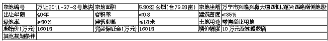 以上出让指标列入《海南省产业项目发展和用地准入协议》,属该协议内容的组成部分。竞得人须与万宁市商务局签订《海南省产业项目发展和用地准入协议》,并严格按照《海南省产业项目发展和用地准入协议》约定内容进行开发建设,否则将承担相关违约责任。(二)其他开发建设要求:1.经查询全国污染地块土壤环境管理系统,该地块不在系统污染或疑似污染地块范围内。用地如涉及压覆重要矿产及位于地质灾害易发区,在该地块内进行项目建设依法需办理建设项目压覆矿产资源审批手续及地质灾害危险性评估的,应按规定办理相关手续。2.该宗地须按照我省商业、办公类建设项目管理要求进行开发建设,不得兴建“类住宅”项目,不得采用住宅套型设计,套内建筑不得设置独立厨房、卫生间、排水排烟等设施,具体按照《海南省自然资源和规划厅 海南省住房和城乡建设厅 海南省市场监督管理局关于加强商业、办公类建设项目全过程管理的意见》(琼自然资规〔2021〕12号)执行。3.装配式建造方式应按照《海南省住房和城乡建设厅 海南省发展和改革委员会 海南省自然资源和规划厅 海南省市场监督管理局 海南省工业和信息化厅关于进一步稳步推进装配式建筑有关事项的通知》(琼建科函〔2021〕155号)等文件要求执行。四、竞买人资格及竞买要求:(一)竞买人资格:1.竞买人资格:本次挂牌活动凡属中华人民共和国境内外的法人、自然人和其他组织(除法律另有规定者外)均可申请参加挂牌。属境外机构和个人(含港、澳、台地区)申请参与竞买的,按照规定需提交商务主管部门核发的《外商投资企业批准证书》和市场监督管理部门核发的《营业执照》。本次挂牌不接受联合竞买。失信被执行人不得参加本次项目竞买。2.竞买人要求:凡在万宁市境内已取得建设用地使用权且造成土地闲置的,或者拖欠土地出让金未缴的,均不具备竞买人条件。竞买人需在签订《成交确认书》后与万宁市商务局签订《海南省产业项目发展和用地准入协议》,并严格按照《海南省产业项目发展和用地准入协议》约定内容进行开发建设,否则将承担相关违约责任。(二)交易资料获取方式:本次挂牌出让的详细资料和具体要求,见挂牌出让文件。手册和文件可从海南省建设用地使用权和矿业权网上交易系统(以下简称网上交易系统,网址:http://lr.hainan.gov.cn:9002)查看和打印。(三)竞买申请方式:本次交易活动竞买申请环节采取线下方式进行,有意向的竞买人按挂牌出让手册的具体要求报名参加竞买。不接受电话、邮寄、口头等其他形式的申请。竞买申请地点:万宁市自然资源和规划局办公大楼用途管制和耕保组。竞买申请时间:2022年11月15日8时30分至2022年12月13日17时00分(北京时间)。(四)竞买保证金:竞买人须按照挂牌出让手册的有关规定向指定账户足额缴存竞买保证金或使用银行保函方式提供竞买保证金。缴存竞买保证金的币种为人民币,不接受外币,且不属于银行贷款、股东借款、转贷和募集资金所得,并出具承诺。使用银行保函方式提供土地竞买保证金的,保函应为不可撤销、见索即付保函,担保金额应不少于全额土地竞买保证金,保证期限自保函开立之日起至挂牌交易活动结束后不少于60日;纸质保函需在竞买保证金到账截止时间前2个工作日送达。竞买保证金到账截止时间为:2022年12月13日17时00分(北京时间)。(五)资格确认:经审核,竞买申请人符合竞买资格,且竞买保证金已按要求交纳的,万宁市自然资源和规划局将发放《竞买资格确认书》,确认其获得竞买资格。竞买资格审核时间:2022年11月15日8时30分至2022年12月13日17时30分。五、挂牌报价时间及地点:(一)本次交易活动挂牌报价竞价环节采取线下方式进行,获得竞买资格的竞买人应按挂牌出让手册的具体要求参与报价竞价活动。挂牌报价阶段仅接受书面报价,不接受电话、邮寄、电子、口头等其他方式报价。挂牌截止由挂牌主持人主持确定。(二)挂牌报价时间:2022年12月5日8时30分至2022年12月15日11时30分,受理报价时间为北京时间工作日8时30分至11时30分及14时30分至17时00分。(三)挂牌报价地点:万宁市自然资源和规划局办公大楼用途管制和耕保组。(四)挂牌现场会地点:海南省公共资源交易服务中心二楼土地矿产资源交易厅(203室)。六、其他需要公告的事项:1.竞买成交当场签订《成交确认书》,并在30日内与我局签订《国有建设用地使用权出让合同》,按《国有建设用地使用权出让合同》约定开工,涉及水务、绿化、卫生、环境保护、消防安全、交通管理和设计施工等应符合国家、海南省的有关规定。2.按照《海南省自然资源和规划厅关于海南省土地交易市场竞买保证金可使用银行保函的通知》(琼自然资规〔2022〕7号)要求,竞买人可使用银行保函方式缴纳竞买保证金,保函应为不可撤销、见索即付保函,保函担保金额应不少于全额土地竞买保证金,保函的保证期限应当自保函开立之日起至招标拍卖挂牌交易活动结束后不少于60日,保函需在保证金交纳截止时间前2个工作日内送达万宁市自然资源和规划局。七、风险提示:(一)本次交易采用线下报名及现场竞价的方式进行交易,竞买人应按时到达指定地点进行竞买申请和报价竞价。(二)竞买人应当仔细阅读并熟知交易规则和有关文件后,参加网上交易活动。竞买申请一经提交,即