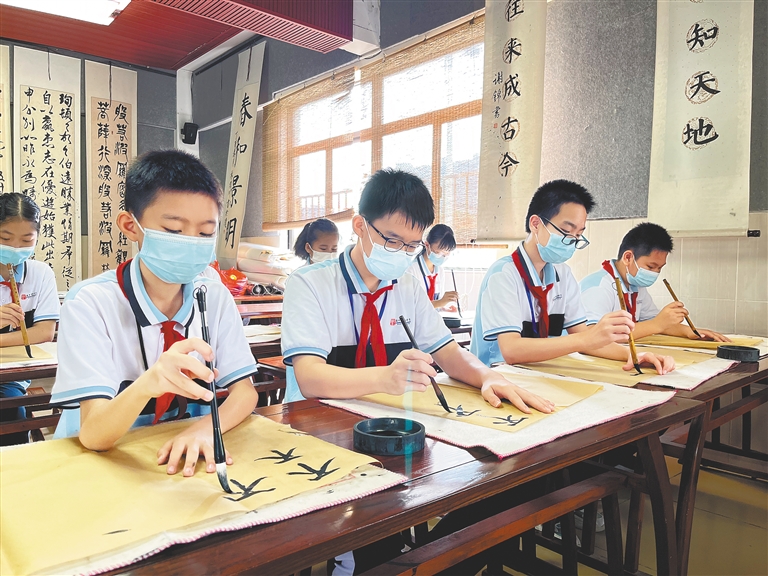 和高校的书法教学相比,中小学的书法教学主要为学生传授书法基础知识,近年来逐渐从教授技法的教学模式向培养学生审美趣味的书法美育方向转变。我省中小学书法课程开展情况如何?海南日报记者近日对此进行采访。