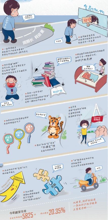 随着知识产权保护与运用意识的加强,这群“潜力股”的魅力正被越来越多人看见。对此,海南华德科技有限公司负责人倪夏有切身体会。“我们是做医疗卫生领域的软件开发,最值钱的‘家当’就是一摞知识产权证书。”倪夏说,每一个知识产权转化为实际产品后,都可以创造几十万元到上百万元不等的经济价值,“但这一‘变现’周期至少需要1年半,在这期间,知识产权往往处于闲置状态,技术研发却又需要持续不断的资金投入。”
