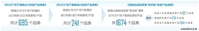 第一张清单和第二张清单是对RCEP与区域内其他贸易协定进行比较,第三张清单《海南自由贸易港“零关税”优势产品清单》则筛选海南自贸港“零关税”政策下比RCEP项下进口关税更低的产品,即比其他省区市更有优势的进口产品。比如部分海南自贸港“零关税”清单产品,在RCEP协定中我国仍征收关税,无降税承诺,或需5至20年,甚至35年不等的时间关税才降至为零。经梳理,目前海南自贸港“零关税”清单优势产品共有1674个品类。