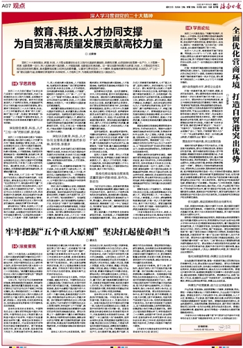 教育、科技、人才协同支撑 为自贸港高质量发展贡献高校力量