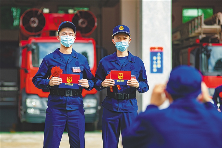 11月18日,海南省消防救援总队2022年120名新招录消防员入队欢迎仪式在总队训练与战勤保障支队举行,这是我省消防救援队伍改革转制后第五批招录的新消防员。