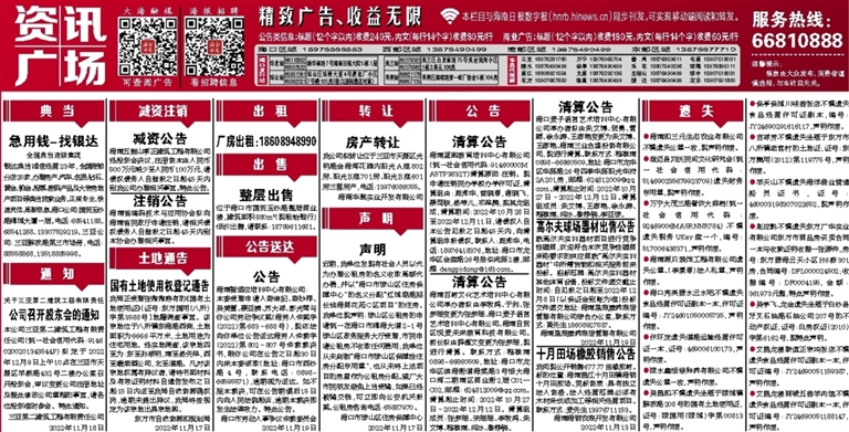 海南省编码技术与应用协会拟向海南省民政厅申请注销,请相关债权债务人自登报之日起45天内到本协会办理相关事宜。