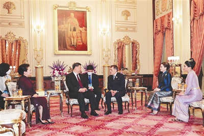 习近平指出,中泰是好邻居、好朋友、好亲戚、好伙伴。两国关系历经风雨洗礼,在新时代不断发扬光大。今年是中泰建立全面战略合作伙伴关系10周年,中方愿同泰方继续弘扬“中泰一家亲”特殊情谊,一道构建中泰命运共同体,书写两国关系新篇章。