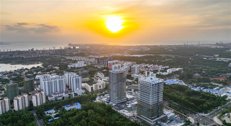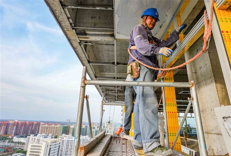 11月19日,在洋浦经济开发区国际航运大厦项目现场,工人正在有序施工。该项目已全面进入室内的机电、门窗和电梯等工程施工阶段。已有上海民生轮船、上海中谷物流、海南长荣海运、丹海航运等20多家企业登记入驻。洋浦国际航运大厦是洋浦重要的航运产业配套项目之一。