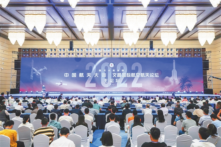 本报海口11月21日讯 (记者邱江华)11月21日,2022年中国航天大会/2022文昌国际航空航天论坛开幕式及主论坛在海口举行。开幕式及主论坛以“航天点亮梦想”为主题,在海口、文昌两地设立了24个不同领域,线上线下相结合的论坛、活动与展览。