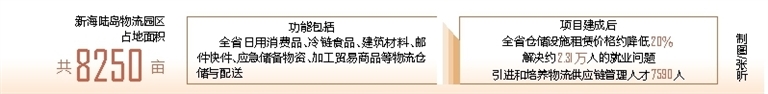 新海陆岛物流园区是依托琼州海峡滚装运输港口,按照自贸港建设要求和海南经济社会发展需要,建设并统一主体管理,实现货物集散、存储、分拨、转运等多种功能的物流设施群和物流产业聚集区。