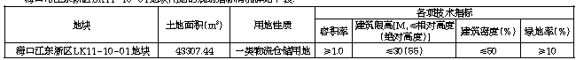 海口市江东新区LK11-10-01地块用地的规划指标情况详见下表: