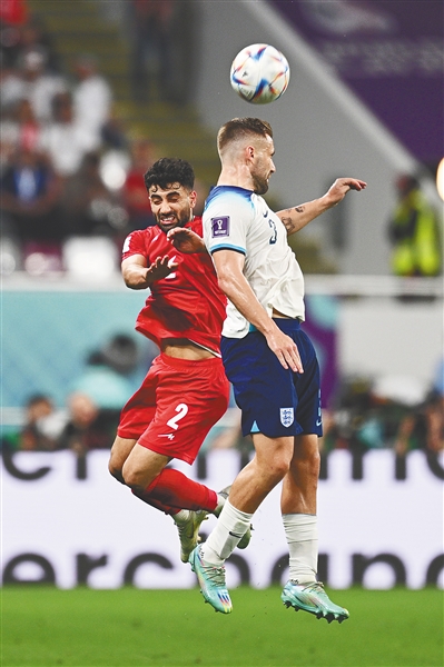 面对伊朗的“铁桶阵”,英格兰第35分钟打破僵局,贝林厄姆接卢克·肖左路下底传中禁区内头球破门。第43分钟,英格兰在角球进攻中再进一球,马奎尔头球摆渡,萨卡在小禁区前凌空抽射入网。三分钟后伊朗再遭打击,凯恩右路传中,斯特林中路跟进凌空垫射得分,为英格兰将比分改写为3:0。
