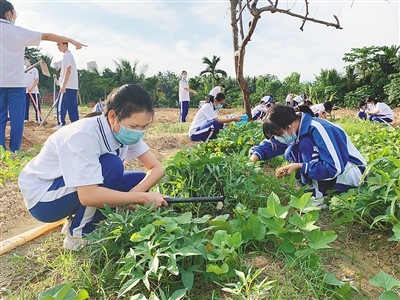 “我们想帮助学生们从小树立起‘劳动最光荣’的观念,培养良好的劳动习惯。去年,‘海南省关心下一代劳动教育基地’在学校揭牌。接下来,我们将进一步整合资源,拓展劳动实践基地面积,为孩子们打造劳动乐园,让劳动教育更加深入人心。”黄坤说。