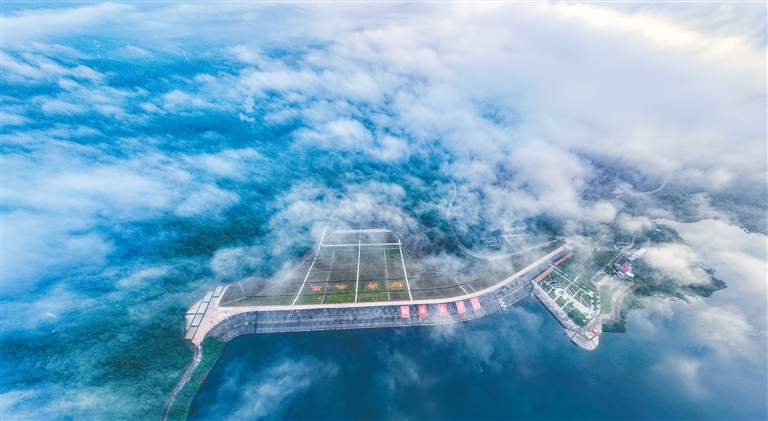 近日,位于儋州的松涛水库云雾缭绕、风光壮美。松涛水库位于南渡江上游,是我省最大的水库。近年来,我省加快建设国家生态文明试验区,在该水库加强生态环境保护和大坝除险加固,整个松涛水库坝顶焕然一新。本报记者 陈元才 摄