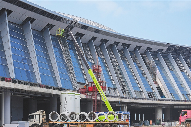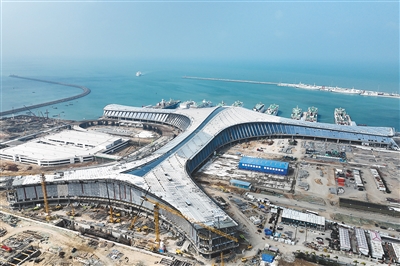 近日,由中交四航局承建的海口新海客运枢纽项目已经进入最后冲刺阶段。目前,主体建筑部分正在进行金属屋面、玻璃幕墙、机电安装和室内装修施工。