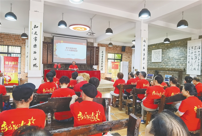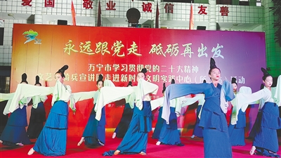 夜幕降临时,由万宁舞协、音协以及“8595”红旗不倒宣讲团成员组建的“文艺轻骑兵宣讲团”下基层、进乡村,送晚会,送“微宣讲”,在丰富群众夜晚生活中寓教于乐。市委党校教师翁锦云选取党的二十大报告的关键知识点,备课成一个个有奖“快问快答”,在晚会节目中穿插进行,以接地气的方式推动党的二十大精神深入群众。