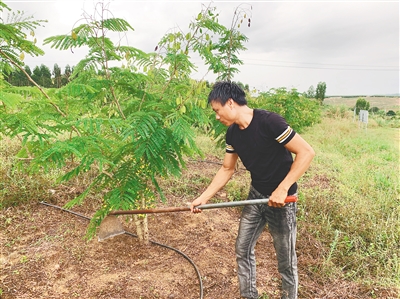 11月23日,在基地负责人符仁江的带领下,海南日报记者来到这里采访,看到基地工作人员刘达明正在用锄头给一棵叶子呈长圆形的树除草。“这一片是苏木,一般生长5年就可以采伐使用,目前只种了3年多,所以还在进行管理。”符仁江说,当地黎族群众会用苏木的树格给棉线染色。