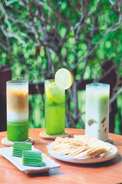 有一种食物,在海南的街头巷尾、老爸茶店或甜品店,经常可以见到,它通体翠绿又或有白色夹层,散发着淡淡的植物香,是喜爱软糯香甜食品者的心头好。它就是斑兰糕——一种加入斑兰汁液制成的特色糕点。