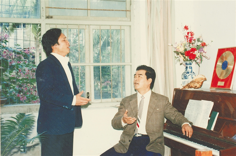即便过去了40多年,谈起与陈忠的初识,时任广东民族歌舞团副团长陈翘仍记忆犹新。那是在20世纪80年代初的一场演出中,来自乐东县文工团的陈忠一开嗓,就给了陈翘惊喜。“他有一副好嗓子,唱黎族民歌很厉害,是个可塑之才。”陈翘说。
