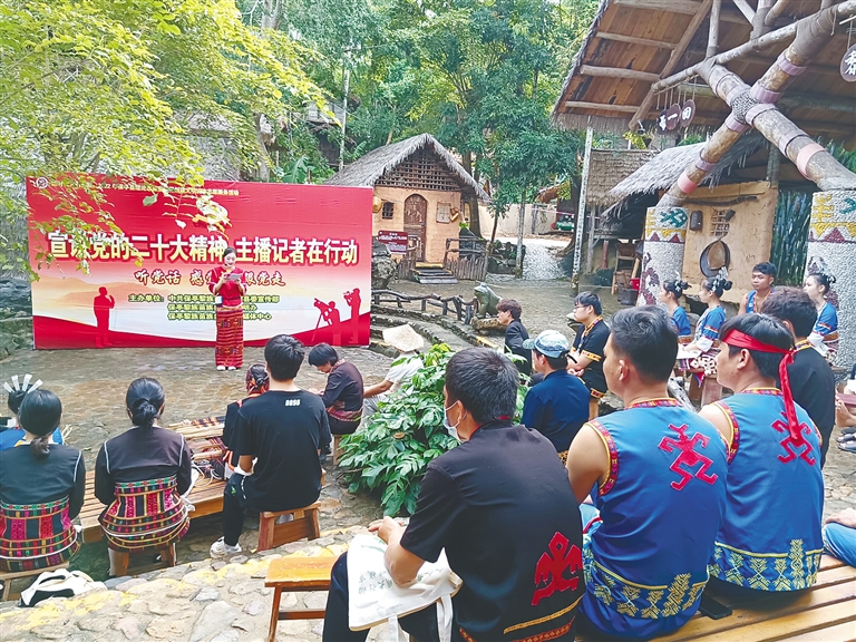 从媒体视角传播党的二十大精神,是保亭在宣讲上的创新实践之一。每周三,保亭“宣讲党的二十大精神 主播记者在行动”宣讲团深入社区、黎村苗寨、景区景点等地。