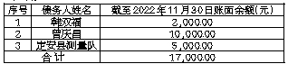 根据海南省科学技术信息研究所的工作安排,我所正在开展历史债权债务清理工作。截至2022年11月30日,下列债务人尚未归还所借款项: