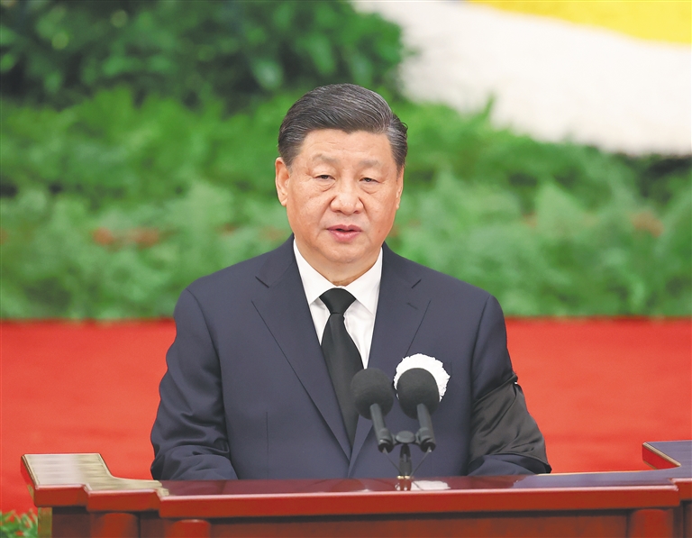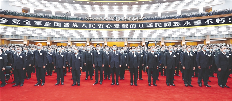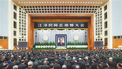 今天,我们在首都人民大会堂隆重举行追悼大会,极其沉痛地悼念敬爱的江泽民同志。