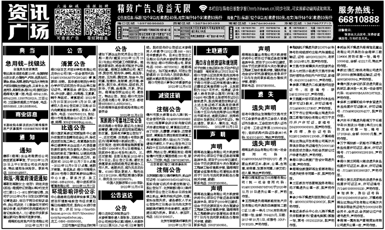 海口市琼山区民政局现向我局申请土地证遗失补发业务,该宗地位于海口市琼山区府城街道办事处云露社区高登西街34号,土地面积为334.7平方米。经调查,该申请人持有的琼山国用(府城)第04498号《国有土地使用权证》已登报遗失,现我局通告注销该证,上述土地证将不再具有法律效力。凡对此有异议者,请自通告之日起十五日内向我局琼山分局提出书面申述,逾期无异议,我局将依法补发新的《不动产权证》。特此通告。联系人:詹先生,电话:65809392。
