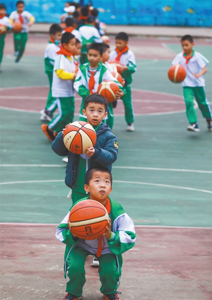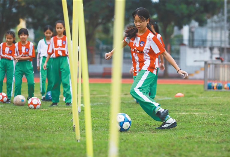 近日,在屯昌县向阳小学的操场上,学生练习篮球、足球技巧。“双减”政策出台以来,体育运动项目成为我省中小学课后服务的热门选项。学生在运动中锻炼身体,磨炼意志,缓解学习压力,促进自身全面发展。本报记者 李天平 摄