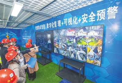 走入观摩会的VR体验馆,体验者戴上安全帽,手拿模拟器,可沉浸式体验智慧工地数据决策系统,了解项目信息化管理、智能化管理的先进做法。
