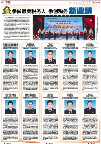 从一线窗口人员到税政股长、分局局长,她的成长一步一个脚印。她倾力纳税服务,创新推动设立“办不成事”窗口、“吐槽”窗口、肖总工作室等,着力提升纳税人满意度。她全力落实退税减税优惠政策,从政策辅导到业务办理,亲力亲为,助企纾困解难。她致力志愿服务,特别是担任青年抗疫突击队队长,投身抗疫一线,扛起党员干部责任担当。以匠心致初心,用平凡铸不凡。她用辛勤汗水与扎实业绩浇铸海南自贸港税务奋斗勋章。