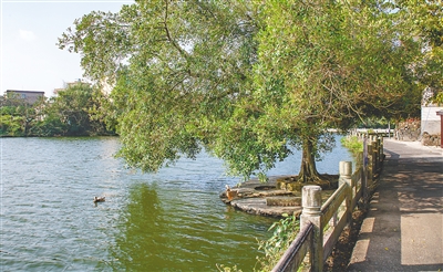 “这一片水域是天然形成的,村民们都把它看作是大自然的恩赐。”在文山村村口,周秀梅公(周氏迁琼始祖)理事会主任周立新指着眼前长约1200米的文山塘说,“这口塘的水源主要由泉水补给,千百年来,泉水汩汩不断,文山塘积水不涸。”