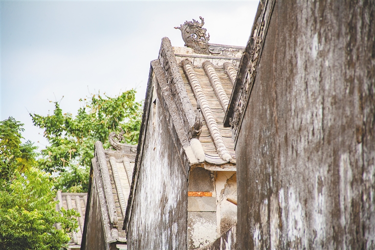 在黄奕芳的带领下,海南日报记者走进了陈家大院。这是华侨陈贵仁从南洋返乡修建的宅子。“这里目前受到保护,在以前绝对算得上豪宅。”黄奕芳指着陈家大院门口“海口市不可移动文物”的牌子说。