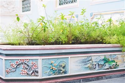 “把这个形象做在房顶上,教育子孙后代要像蛟龙一样,努力奋斗,突破劫难,最终取得成功,是望子成龙的意思。”许达联说,蛟龙、祥云、牡丹等吉祥元素通常是灰塑的取材点。例如,正厅主梁正下方常雕刻仙桃、牡丹、花篮等图案的灰塑;屋檐、屋脊上,则常常装饰着广曲蛟、圈草尾、祥云造型的灰塑。这些灰塑用石灰造型后,再上色,形成漂亮的彩塑,具有美化效果。