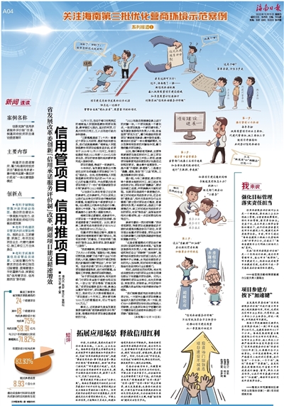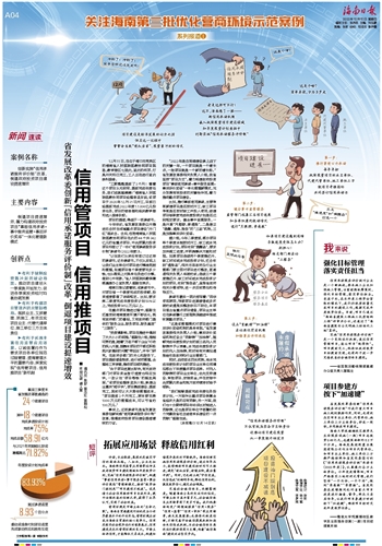 营商环境是市场主体的“生命之氧”。海南自贸港建设对标的是当今世界最高水平的开放形态,营商环境应该成为海南自贸港的核心竞争力。信用是经济社会有序运行的重要基石,信用建设是优化营商环境的良方。市场主体讲信用,才能降低交易成本,构建和谐有序高效的市场秩序。海南创新实施信用承诺服务评价制,通过传导压力,能够确保项目建设按时间节点推进,避免“前松后紧,前慢后快,最后靠冲刺”。同时,它也树立起“守信受益,失信惩戒”的鲜明导向,释放信用红利,激发投资信心,稳定社会预期。