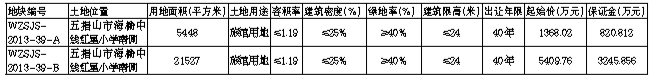 根据《招标拍卖挂牌出让国有建设用地使用权规定》(国土资源部令第39号),经五指山市人民政府批准,五指山市自然资源和规划局决定以挂牌方式出让编号为WZSJS-2013-39-A、B两宗国有建设用地使用权。本次挂牌出让委托有资质的挂牌代理机构具体承办。现将有关事项公告如下:一、挂牌出让地块概况: