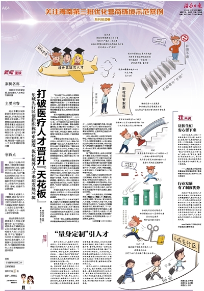 量体裁衣靠尺子,评价人才看标准。职称评审,既是科学评价、引才用才育才的指挥棒,也是激发广大人才创新活力的重要杠杆。如果说先行先试的制度解决的是如何把境外人才“引进来”的问题,那么,优化人才评价体系,拓展境外人才成长、发展的空间,就是要解决留得住、用得好的问题。从实践效果来看,海南用创新举措、暖心服务,为先行区创新职称评审制度,解决了境外人才职称获评难、晋升难,特别是一些新业态人才无法取得职称等问题,填补了行业评价体系的空白。从长远来看,大胆探索与国际接轨的人才评价方式,加快构建具有全球竞争力的人才制度体系,能进一步展示海南自贸港开放包容的国际形象,增强海南自贸港的吸引力。