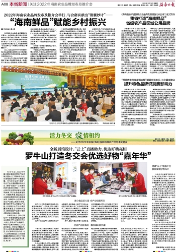 2022年9月,我省正式启动“海南鲜品”区域公用品牌的创建,第一批通过的15家企业,包括容益、水果岛、南国、传味文昌鸡等,推出品牌农产品36个,通过配套措施,在产品品质、品牌推广、扩大生产等方面均取得进步。