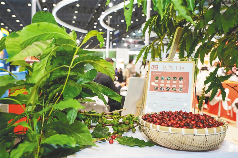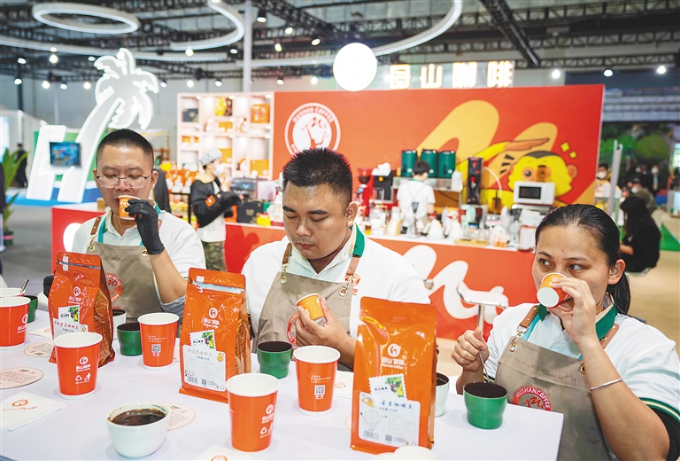 在海南农垦馆,参观者既可以品尝各类优质农产品,还可以了解它们从田间到舌尖的生产加工全过程。