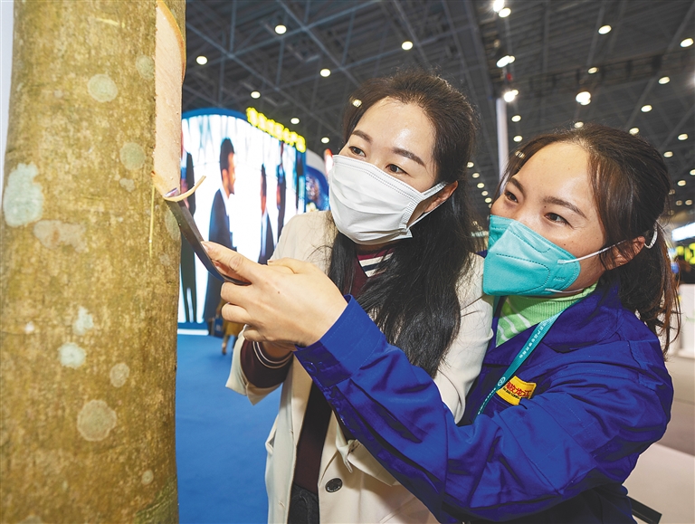 海垦草畜将生态厨房搬进场馆,海垦果蔬展出热带果蔬露营基地,海南橡胶花样展示一棵橡胶树的百般用途……本届冬交会上,海南农垦各产业集团争先设置诸多有味、有趣、有料的互动体验区,让来往客商流连其中。