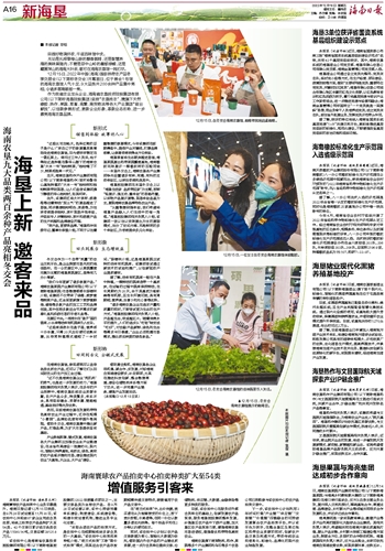 然而,目前海南农垦在发展热带特色高效农业产业过程中,还存在规模“小散弱”、品牌知名度有待提升等局限。借助冬交会,海南农垦集中推出新产品,打造品牌,为扩大市场提供坚实基础。