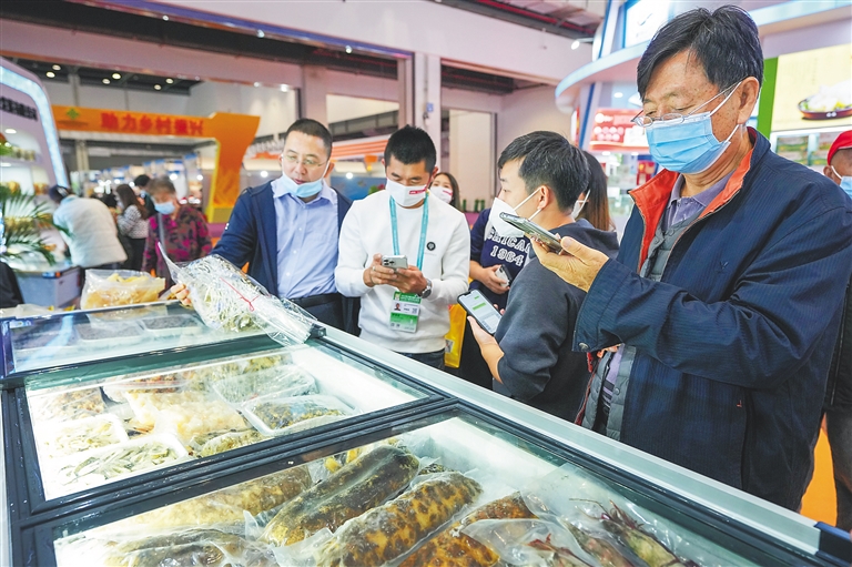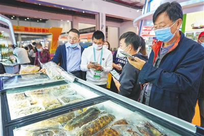 12月16日,观众在选购冰鲜海产品。本报记者 武威 摄