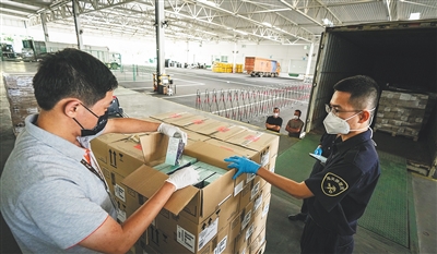 “咔呲!”一辆货运车缓缓停稳后,物流中心装卸员陈荣进和同事快步向车尾走去,他们在马村港海关工作人员的监卸下,解开车上的海关锁,核对完信息,再卸下车内的离岛免税商品。近日,位于马村港的海口综合保税区中免海南国际物流中心内,一批批离岛免税商品在“过关”验放。